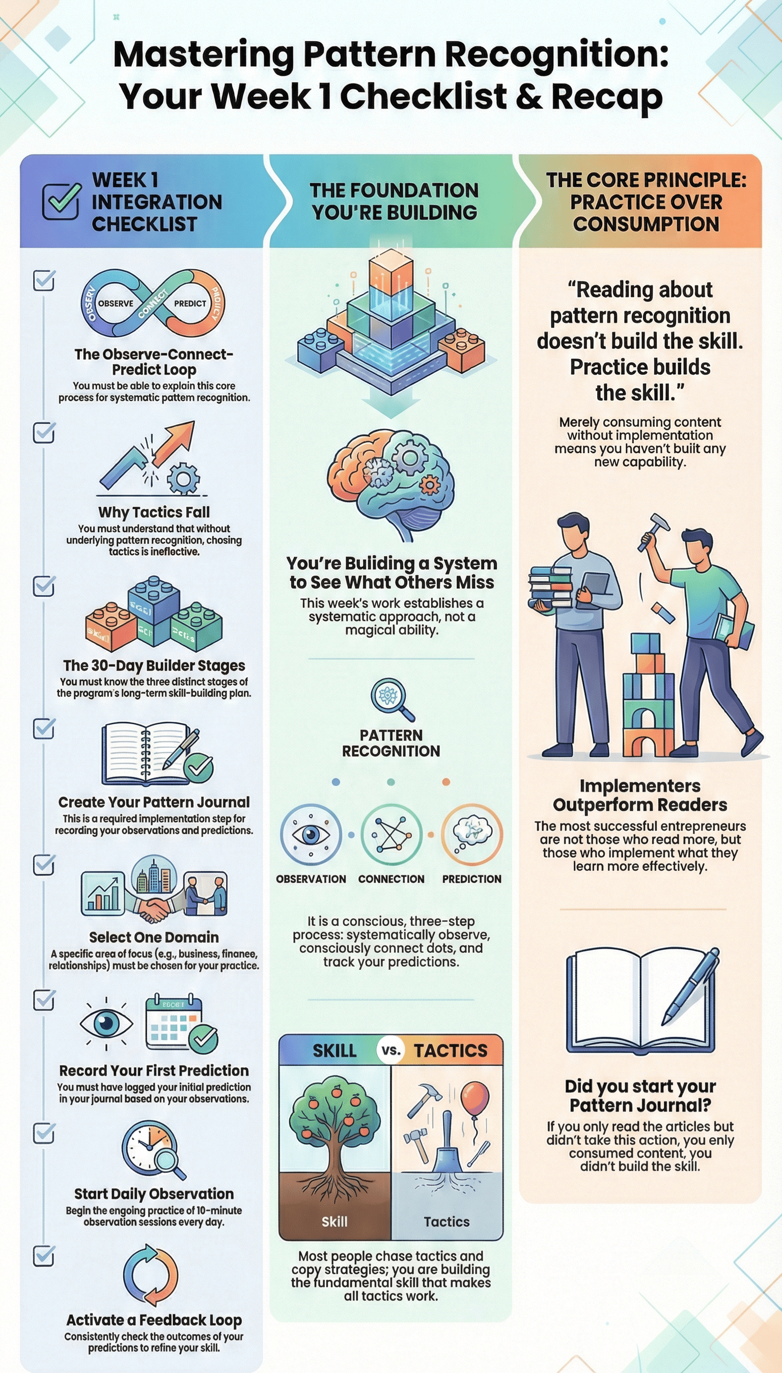 If you read all five articles this week but didn't start your Pattern Journal, you consumed content. You didn't build capability.
